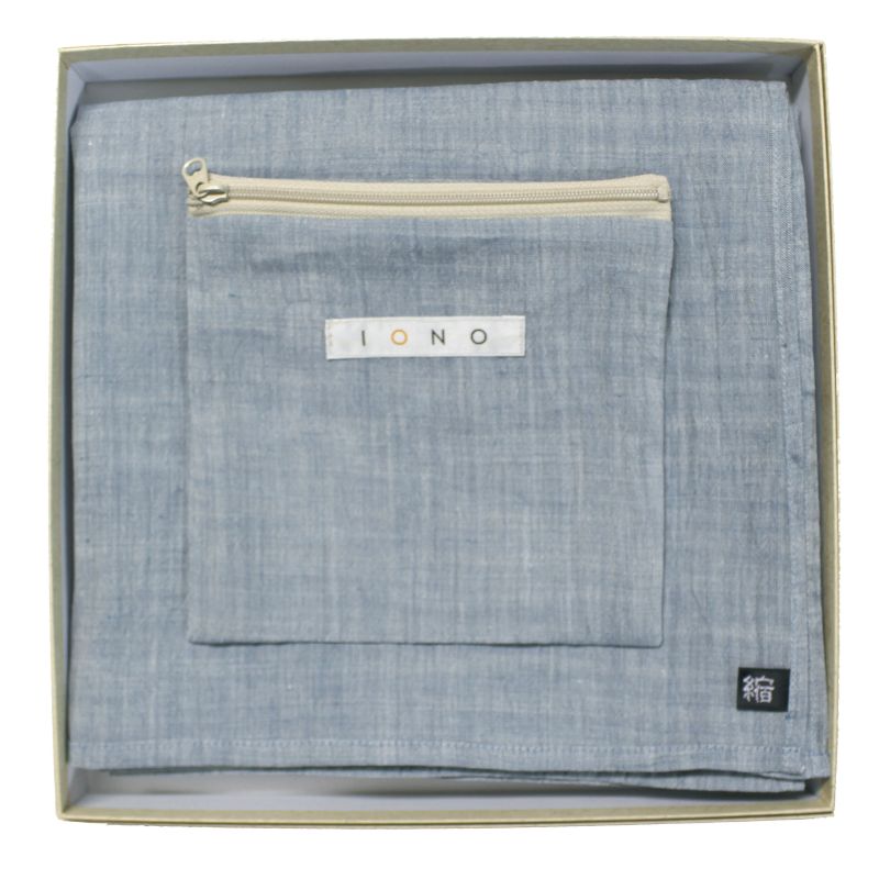 A traditional Japanese wrapping cloth called Furoshiki. Furoshiki is a square cloth used to wrap and carry and store things. This cloth is called Chijimi-Nuno in Japan. The textile is hand-finished to give " Shi-bo (wrinkles) " on the surface with the traditional rubbing technique dating back to 400 years ago. Comes with a cute pouch with the same pattern as the furoshiki.
