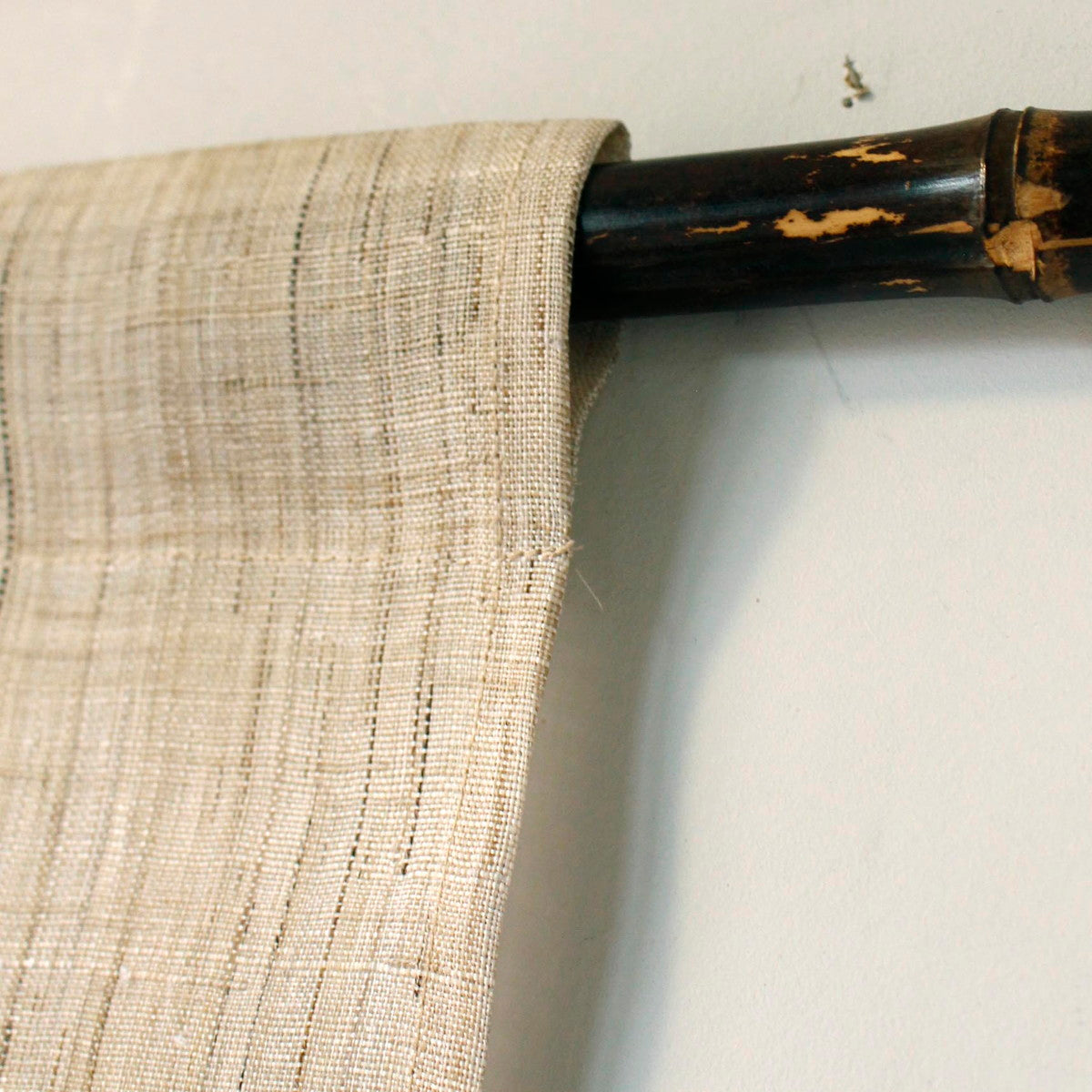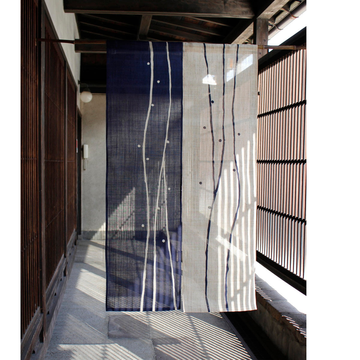 A traditional Japanese curtain(Noren) made of hand-woven ramie fabric. Japanese craftsmen have dyed the noren fabric with a floating pattern.