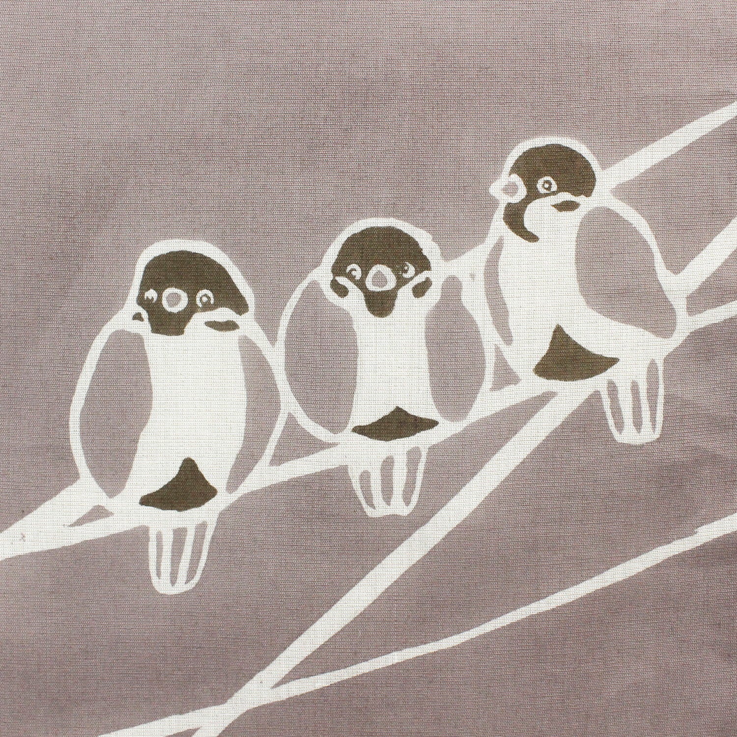 A traditional Japanese noren made of ramie fabric. The design of sparrows singing on the trees is very cute.
