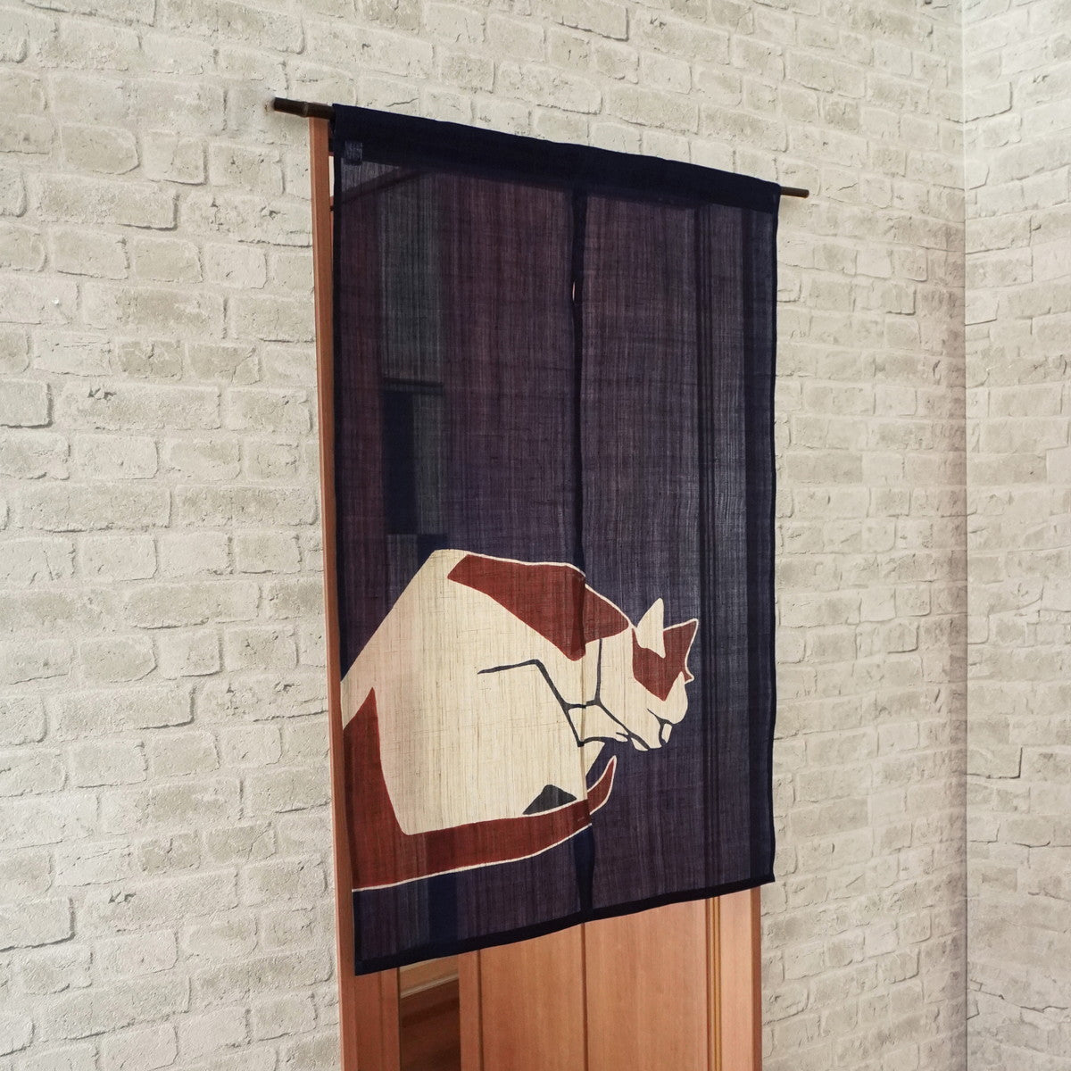 Japanese Curtain (Noren) / Ramie / Cat / Indigo / W84xH120cm